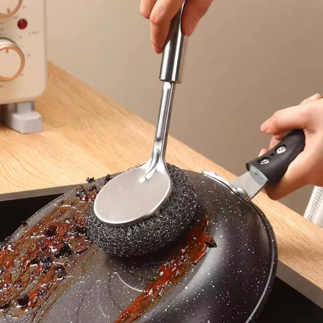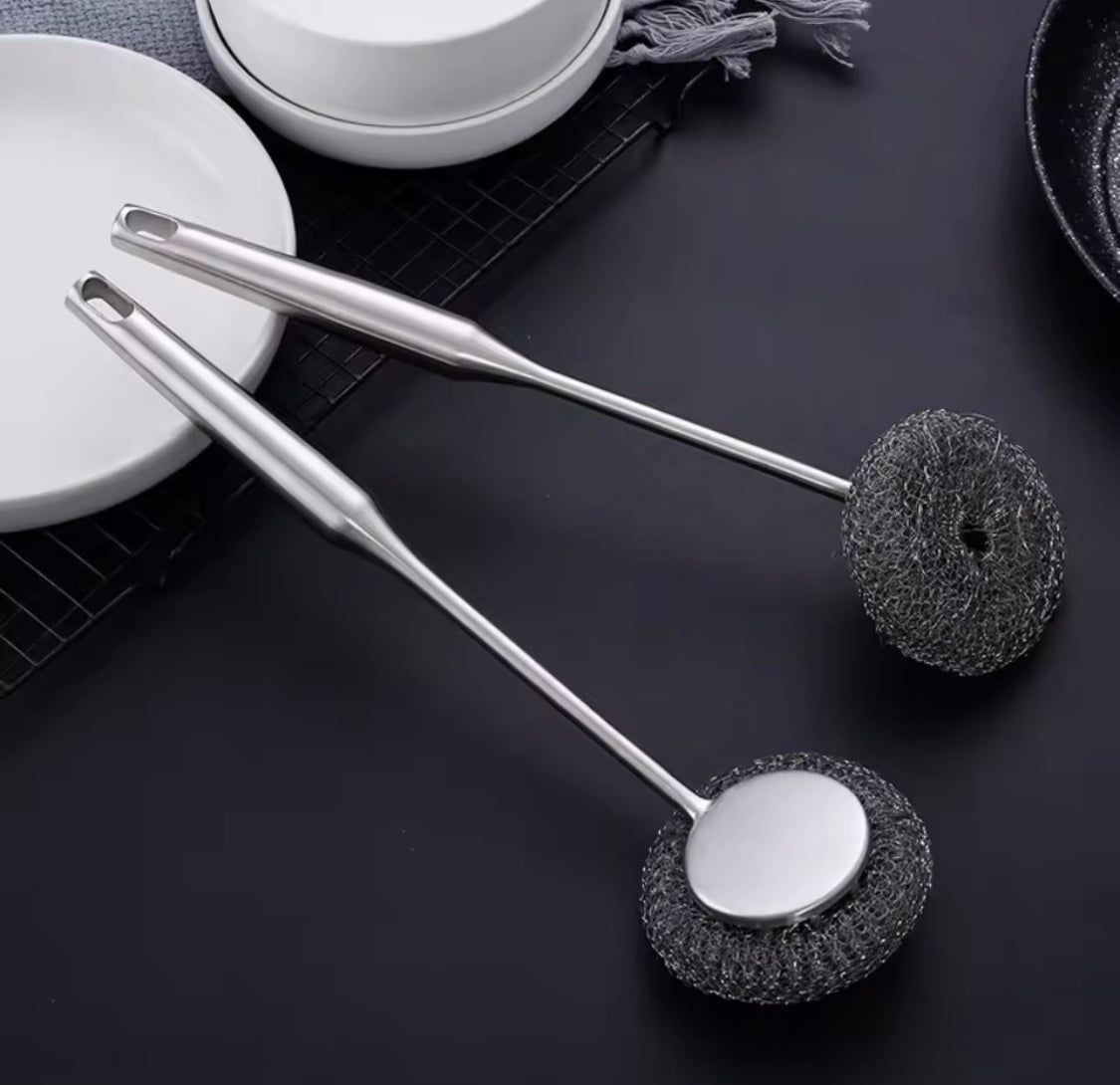 Tackle tough grime with ease using our Long Handle Stainless Steel Wire Ball Brush. Designed for strong decontamination, this durable brush features a tightly wound wire ball ideal for scrubbing away stubborn stains, grease, and residue from sinks, pots, and pans. The extended handle offers added leverage and keeps your hands safely away from hot water and harsh detergents. Built to last, it's the perfect tool for heavy duty kitchen cleaning and daily dishwashing needs.